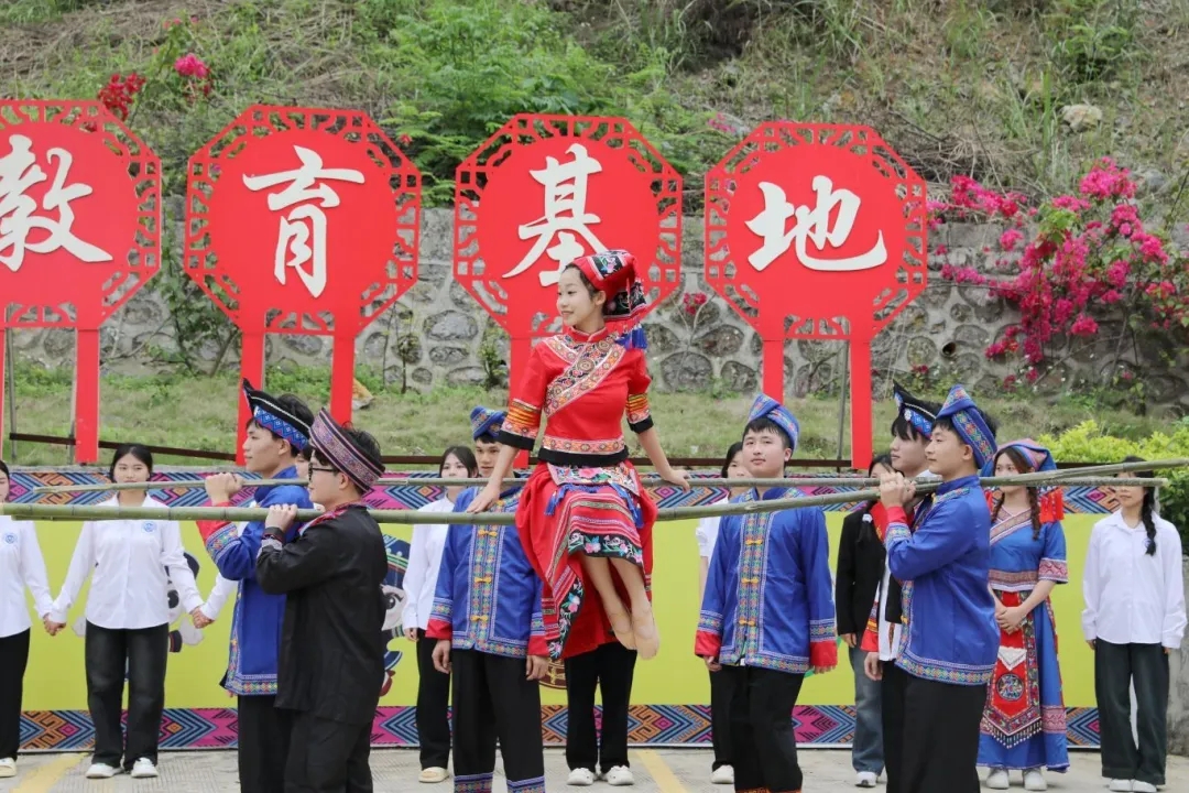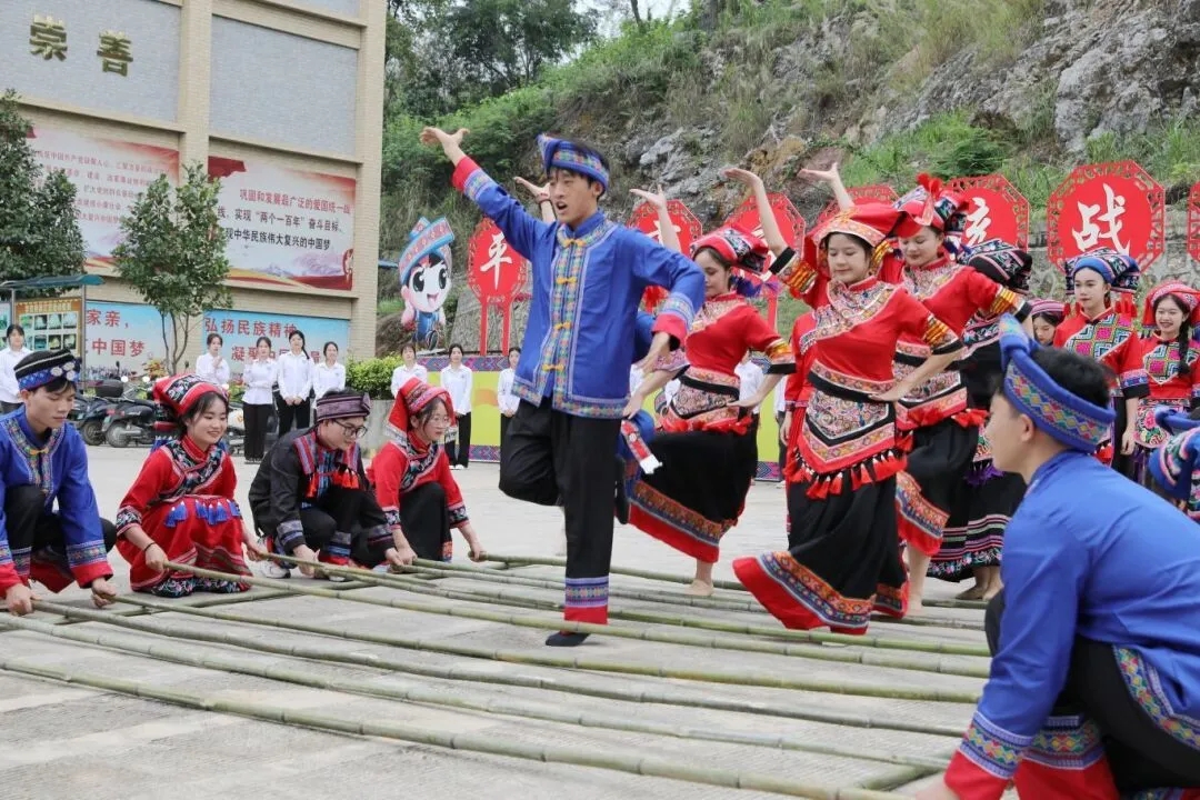 竿竿舞民族旋律,步步現(xiàn)團結(jié)情懷。4月9日,同學(xué)們身著民族服裝,相聚在統(tǒng)戰(zhàn)紅色文化教育基地,歡快跳起了竹竿舞。紀委書記、副校長彭高彬等校領(lǐng)導(dǎo)到現(xiàn)場與師生一起共慶三月三。