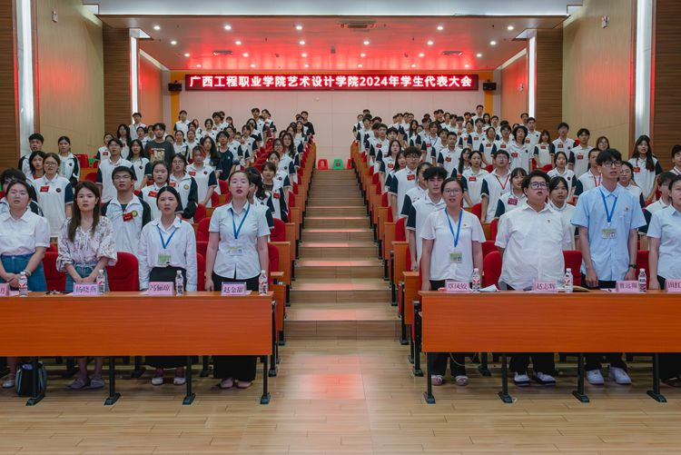 在莊嚴的國歌中,藝術設計學院2024年學生代表大會正式拉開帷幕