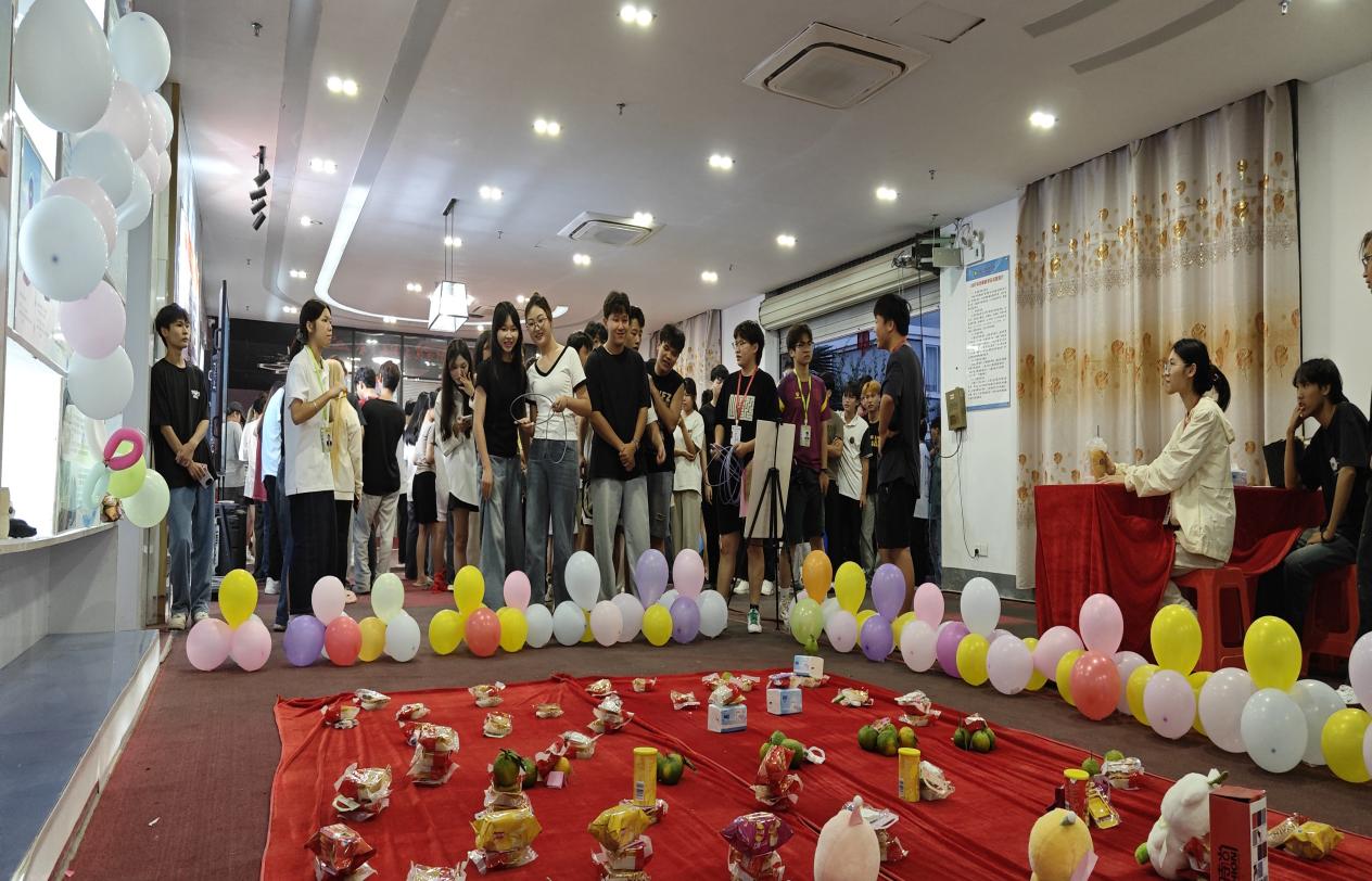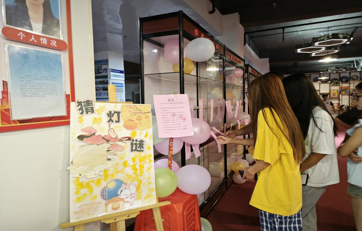 隨著夜幕的緩緩降臨,學(xué)院內(nèi)張燈結(jié)彩,一派節(jié)日的喜慶景象。藝術(shù)設(shè)計(jì)學(xué)院精心布置了多個(gè)主題區(qū)域,包括“套圈”活動(dòng)區(qū)、“猜燈謎”活動(dòng)區(qū)、“月餅”發(fā)放區(qū)以及“獎(jiǎng)品”兌換區(qū)等,每一處都充滿了濃厚的節(jié)日氛圍和創(chuàng)意元素,吸引了眾多師生駐足參與。
