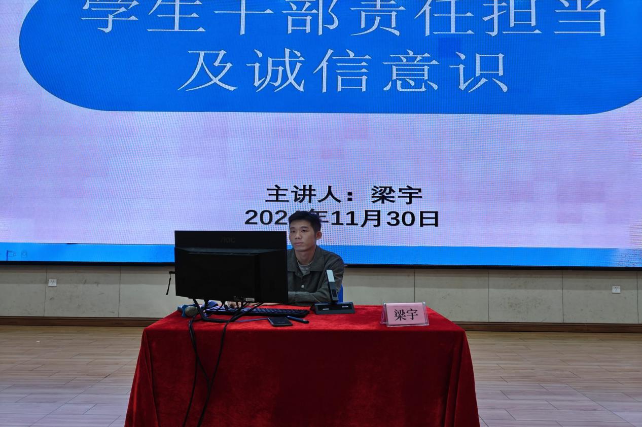 輔導員梁宇老師作《學生干部責任擔當與誠信意識》專題培訓
