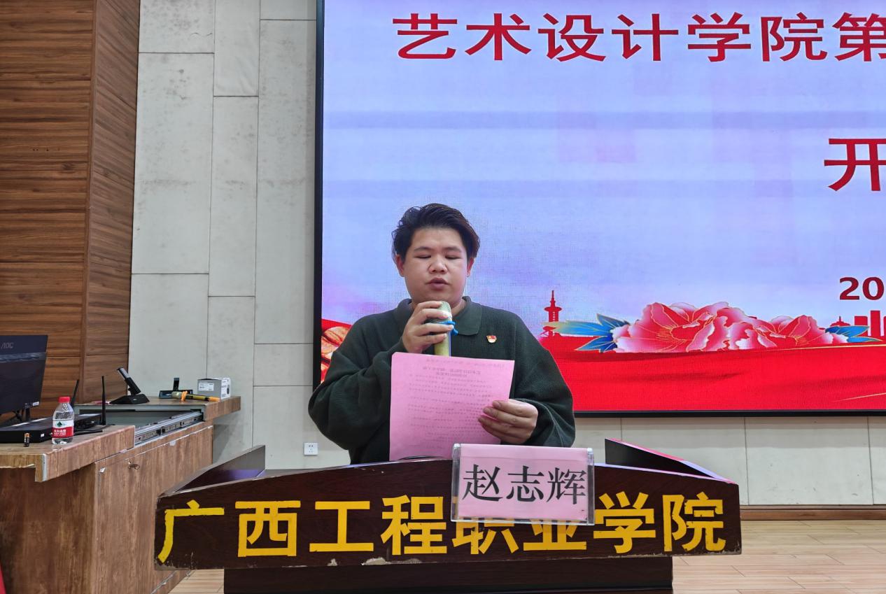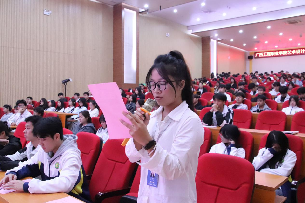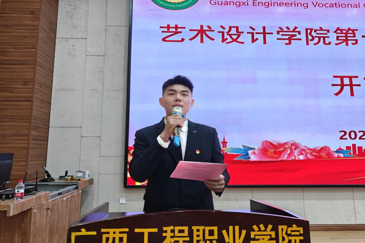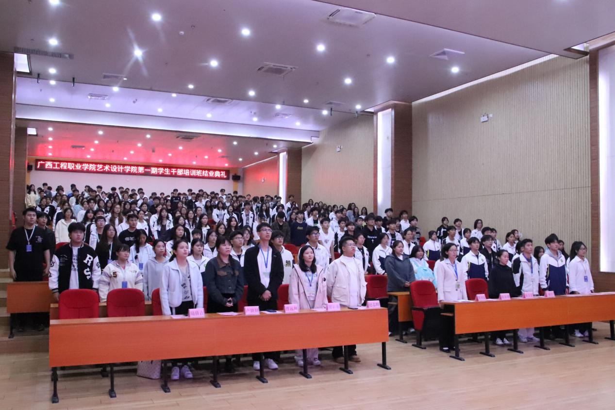 藝術(shù)設(shè)計學院黨支部書記、院長覃鳳姣,黨支部副書記趙志輝,辦公室主任趙金甜,輔導員盧妍妍老師、曹遠翔老師、陸倩吉老師、黃玉瑩老師、梁宇老師出席了開班典禮,學院全體學生干部參加了開班典禮,典禮由學生會干部吳明峰同學主持。