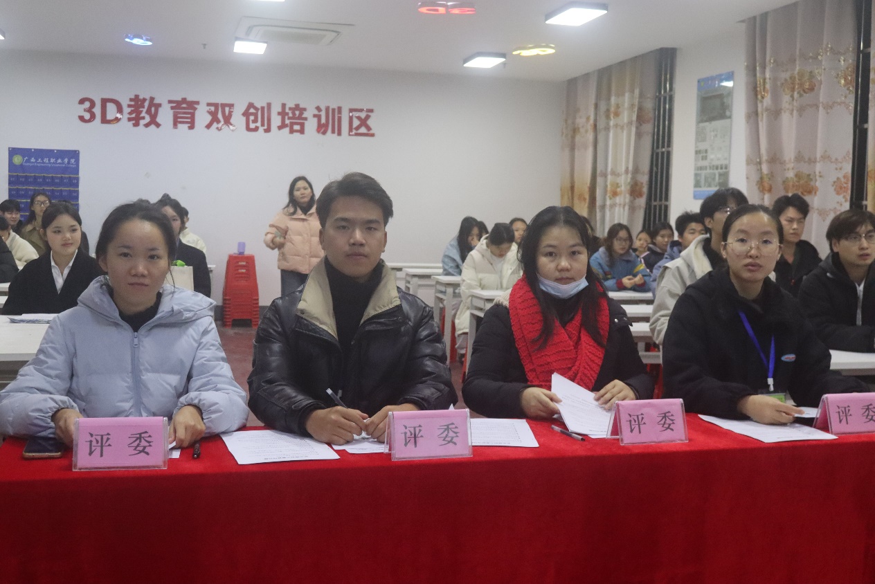本次初選賽評委由藝術(shù)設(shè)計學(xué)院黨支部副書記趙志輝、藝術(shù)設(shè)計學(xué)院辦公室主任趙金甜,藝術(shù)設(shè)計學(xué)院蘇媚老師、梁宇老師、黃玉瑩老師、廖乃龍老師、陸蘭老師、黃艷娟老師等老師擔(dān)任。