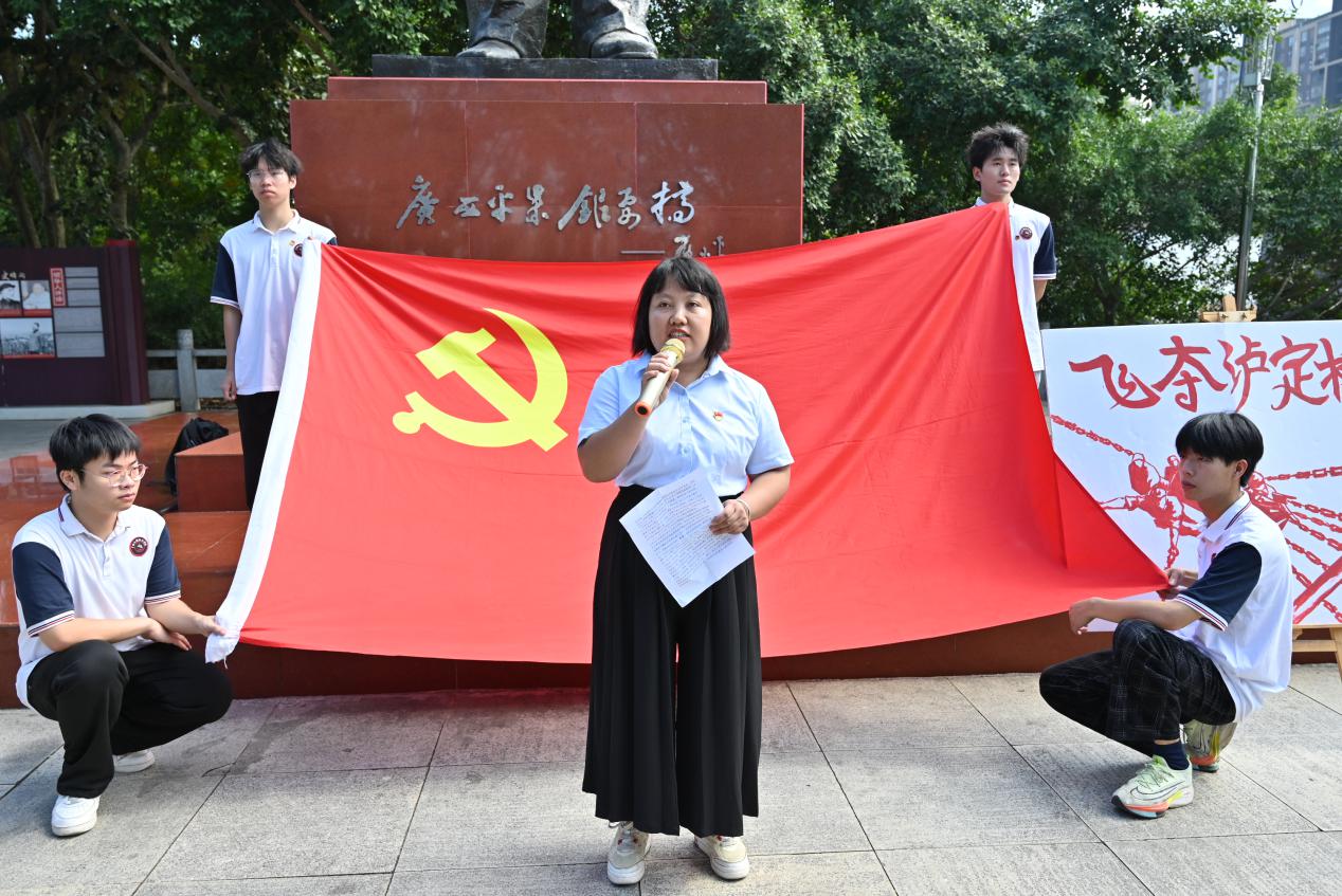 在鄧小平銅像廣場,學(xué)校黨委副書記、校長羅艷妮講話,她指出此次“紅色基因體驗行”專題研學(xué)活動不僅是一次參觀學(xué)習(xí)之旅,更是一次精神洗禮和黨性錘煉。通過實地參觀體驗和現(xiàn)場教學(xué),學(xué)生們深刻感受到了革命先烈們的英勇事跡和崇高精神,進一步堅定了理想信念,增強了歷史使命感和社會責(zé)任感。希望同學(xué)們以此次研學(xué)活動為契機,傳承紅色基因,弘揚紅色精神,努力成為有理想、敢擔當、能吃苦、肯奮斗的新時代好青年,為實現(xiàn)中華民族偉大復(fù)興的中國夢貢獻青春力量。