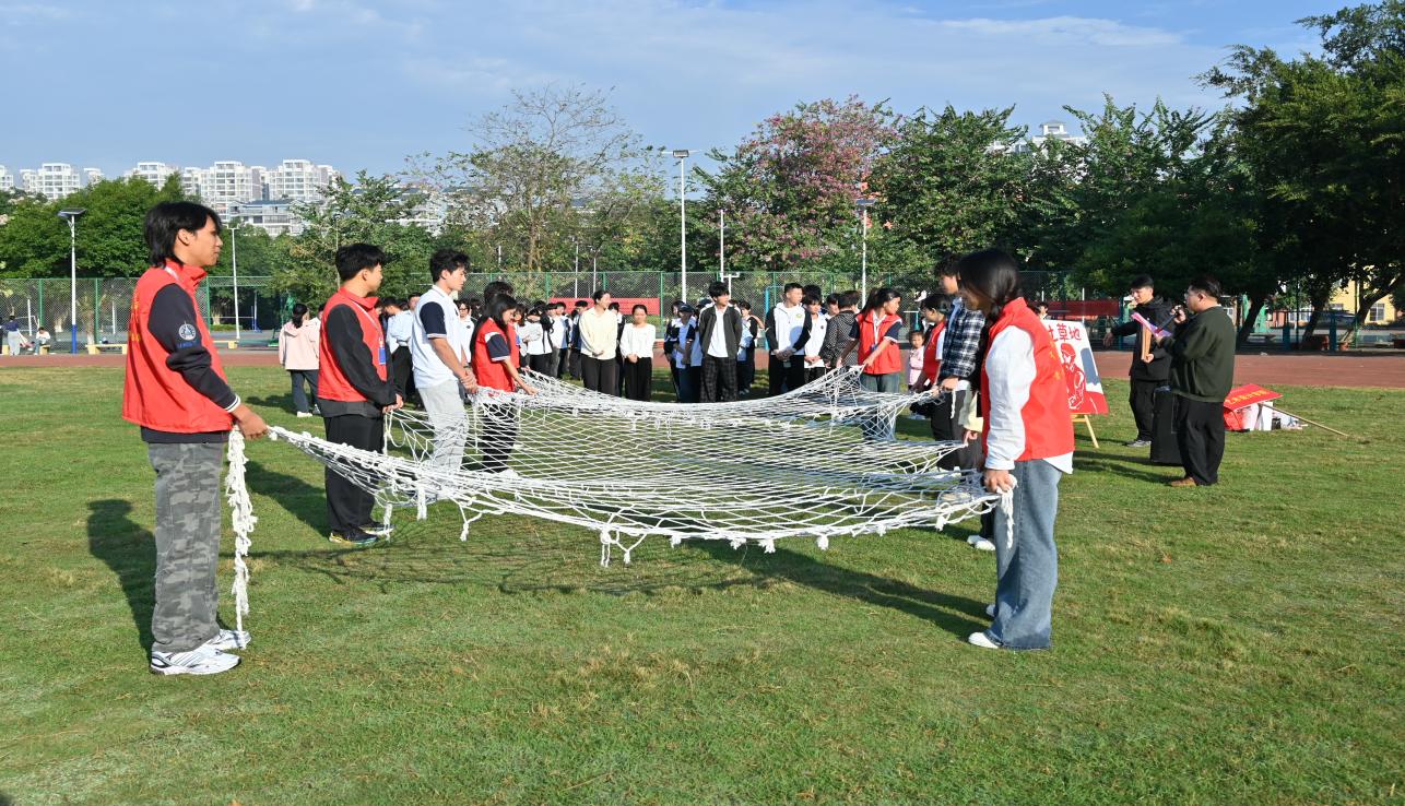 首先進行紅軍過草地關(guān)卡一活動,兩組隊長帶領(lǐng)隊員在固定網(wǎng)格區(qū)域按照匍匐前進的姿勢穿過網(wǎng)格,體驗紅軍過草地過程。紅軍過草地的故事給同學(xué)們帶來了啟示:團隊合作和領(lǐng)導(dǎo)力是攻克難關(guān)的關(guān)鍵,只有憑借著意志的力量和不屈不撓的精神才能實現(xiàn)自己的目標,無論在什么時候都應(yīng)該像紅軍一樣,砥礪前行,永不言棄。
