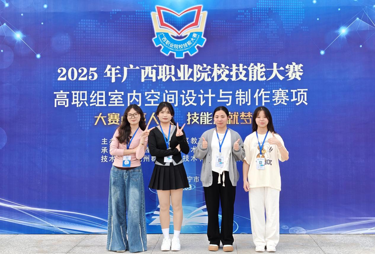 2025年3月14日—16日廣西職業(yè)院校(高職組)室內(nèi)空間設(shè)計(jì)與制作技能比賽在廣西信息職業(yè)技術(shù)學(xué)院舉辦,共有26所職業(yè)院校50支代表隊(duì)參賽,藝術(shù)設(shè)計(jì)學(xué)院王杰老師和譚雪融老師帶領(lǐng)建筑室內(nèi)設(shè)計(jì)專業(yè)楊媛、吳思思、阮盈盈、陶東陽(yáng)等4名同學(xué)參加了此次比賽。比賽分為兩個(gè)模塊,其中技能操作為55分鐘,展示匯報(bào)為5分鐘。