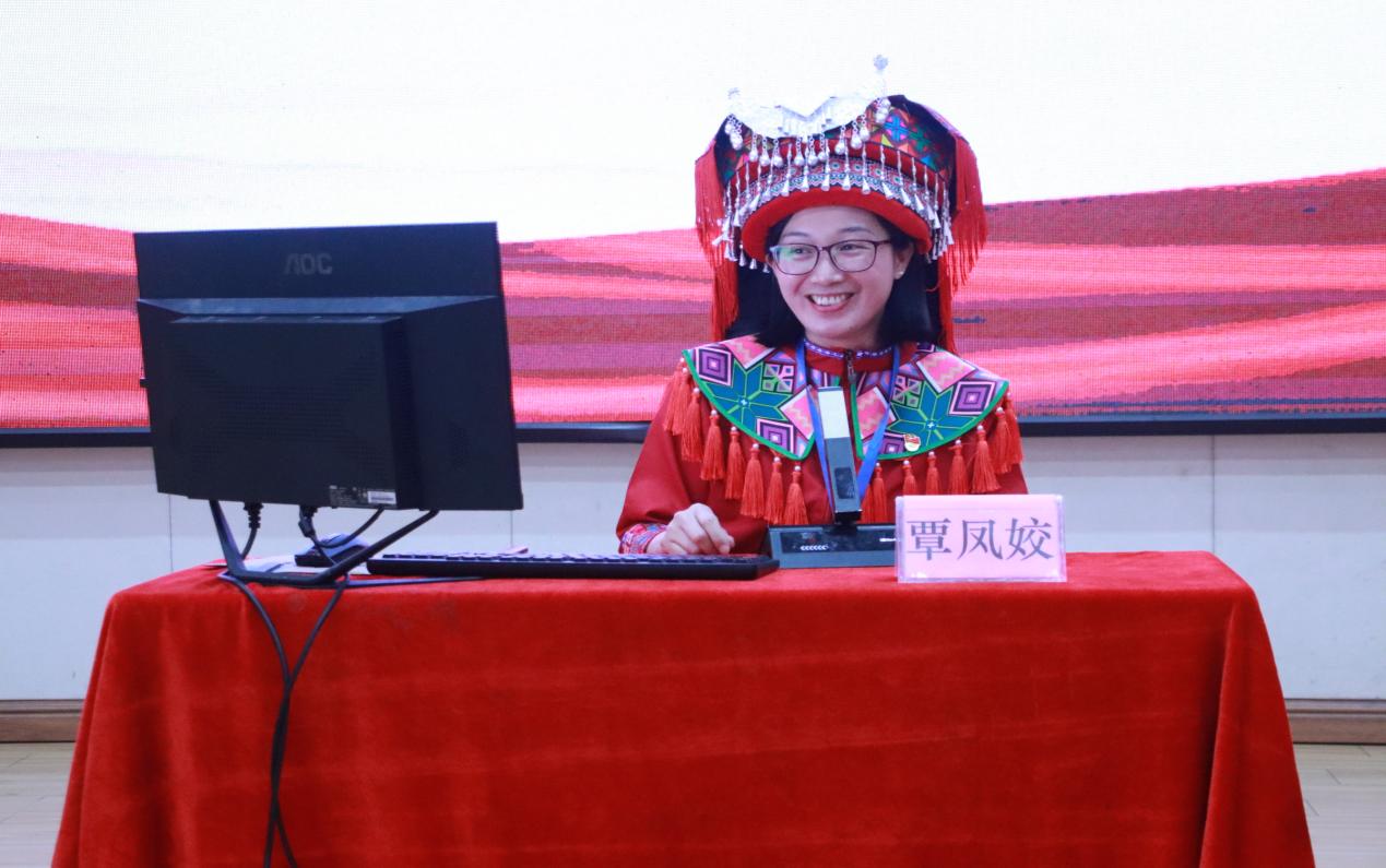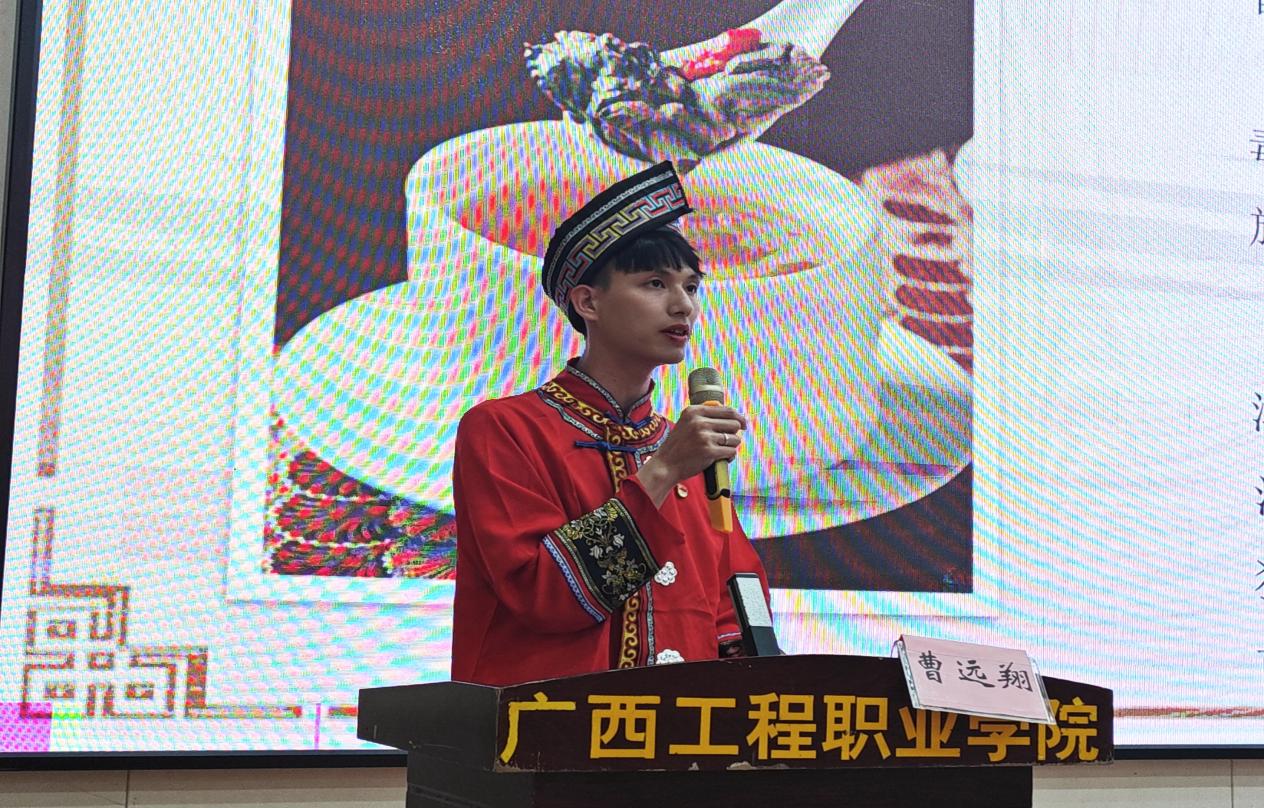 教育學(xué)院黨支部宣傳委員農(nóng)山同志,他以壯族山歌文化和銅鼓藝術(shù)為主線,展現(xiàn)了壯鄉(xiāng)的錦繡山河與團(tuán)結(jié)精神。“壯族山歌傳唱千年,唱的是對美好生活的向往,更是民族團(tuán)結(jié)的深情。”