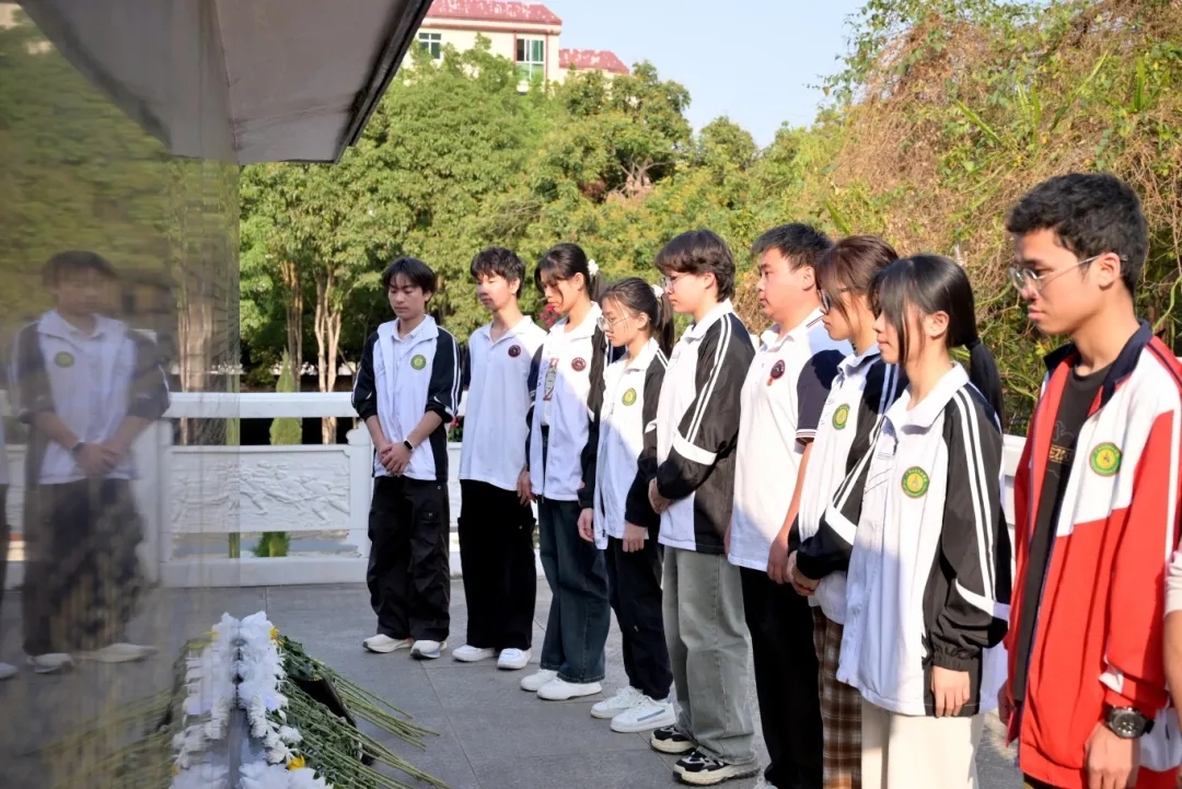 全體黨員在莊嚴肅穆的烈士紀念碑前整齊列隊,舉行緬懷儀式。師生代表向革命先烈敬獻花籃,全體默哀致敬,表達對英烈的深切哀思與崇高敬意。隨后,同志們依次走上瞻仰臺,為烈士獻上小白花,寄托緬懷之情。