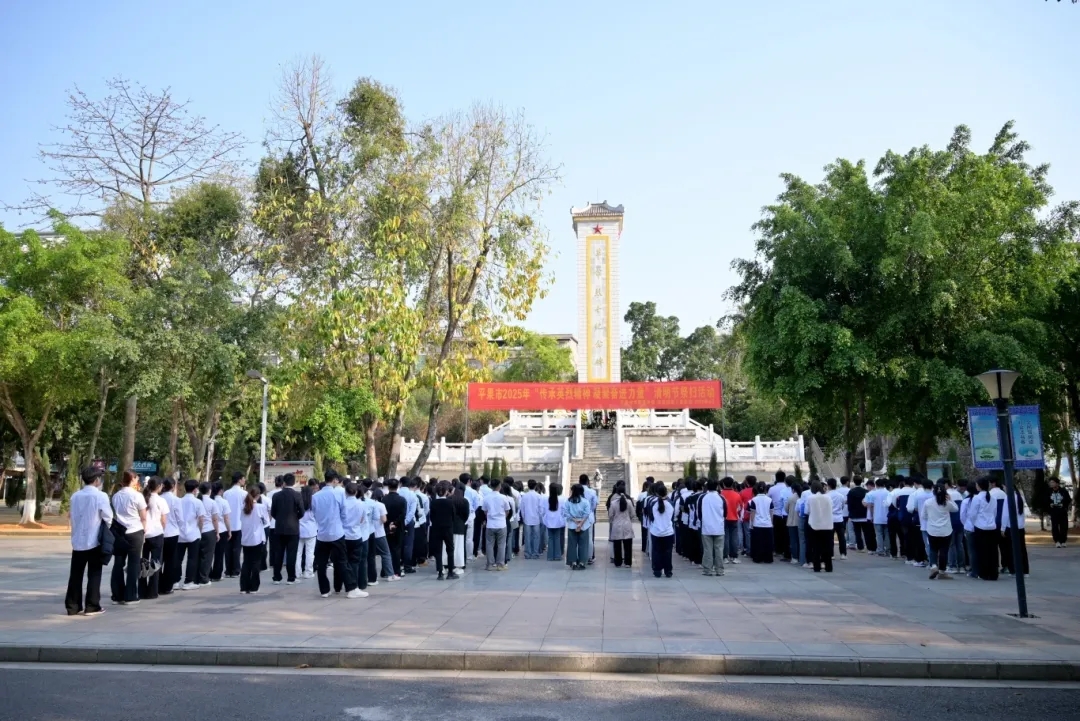 為緬懷革命先烈、弘揚革命精神,深化愛國主義教育,2025年4月2日下午,藝術設計學院黨支部組織全體黨員赴平果市烈士陵園開展“追思革命先烈,賡續(xù)紅色血脈”主題黨日活動?;顒油ㄟ^追思先烈事跡,強化師生理想信念,厚植愛黨愛國情懷,激勵師生以實際行動賡續(xù)紅色血脈。