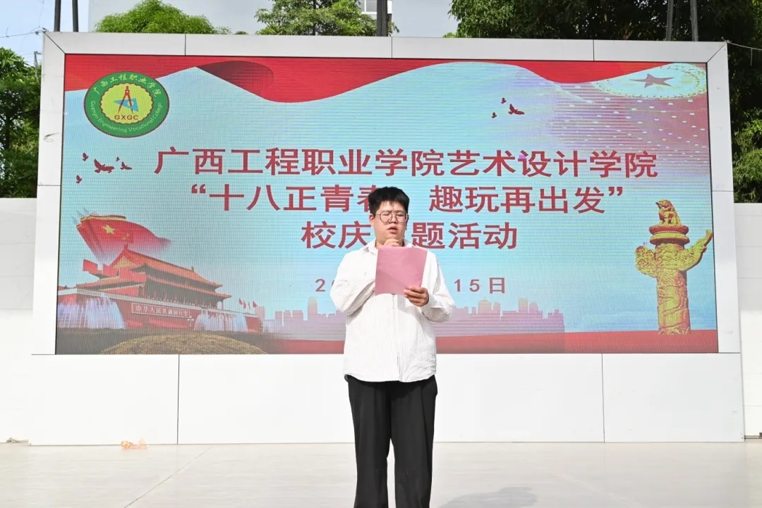 為慶祝學(xué)校建校18周年,2025年4月15日下午,廣西工程職業(yè)學(xué)院藝術(shù)設(shè)計學(xué)院在學(xué)校田徑場開展了“十八正青春,玩趣再出發(fā)”校慶主題趣味活動,全院師生齊聚一堂,共同感受校園的歡樂與溫暖,回顧學(xué)校的成長歷程,展望未來的發(fā)展藍(lán)圖。