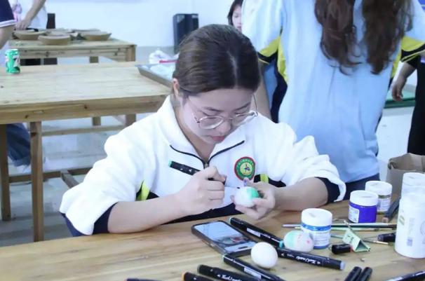 以“傳統(tǒng)+創(chuàng)意”雙主題繪制彩蛋:傳統(tǒng)主題圍繞艾草、龍舟等自然紋樣與吉祥符號(hào),融入青、紅、黃、白、黑五行色彩;創(chuàng)意主題則涵蓋Q版屈原、星空幾何等新穎元素,師生們還在彩蛋上書寫祝福語(yǔ),讓古老習(xí)俗煥發(fā)出青春活力。