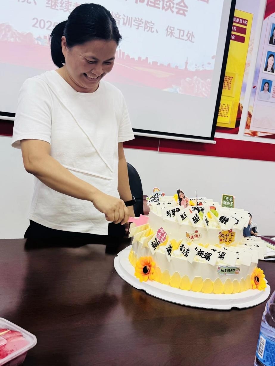 校長(zhǎng)助理梁善雅在總結(jié)中動(dòng)情地說(shuō):"教育是靜待花開的事業(yè),需要教師們以愛(ài)育愛(ài)。"隨后,梁助理親自為教師們切分節(jié)日蛋糕,香甜的奶油象征著教育事業(yè)的甘甜與奉獻(xiàn)。
