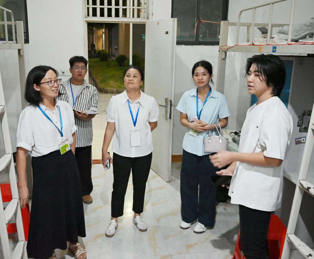 金秋九月,丹桂飄香,我院2025級(jí)新生已順利報(bào)到入學(xué),即將開啟大學(xué)生涯的嶄新篇章。為切實(shí)了解新生入學(xué)后的生活狀況,傾聽新生心聲,幫助新生盡快適應(yīng)大學(xué)生活,9 月 14日晚,學(xué)校校長(zhǎng)助理梁善雅同志率領(lǐng)藝術(shù)設(shè)計(jì)學(xué)院黨支部書記、院長(zhǎng)覃鳳姣、黨支部副書記趙志輝及2025級(jí)新生輔導(dǎo)員,深入新生宿舍開展走訪慰問(wèn)活動(dòng),將學(xué)校的關(guān)懷與溫暖送到每一位新生身邊。