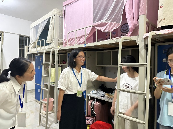 當(dāng)晚 21 點(diǎn),學(xué)校校長(zhǎng)助理梁善雅率領(lǐng)藝術(shù)設(shè)計(jì)學(xué)院教師們一行輕步走進(jìn)新生宿舍園區(qū)。每到一間宿舍,領(lǐng)導(dǎo)們都面帶微笑,與新生們親切交談,詳細(xì)詢問(wèn)他們來(lái)自哪里、是否習(xí)慣宿舍的居住環(huán)境、飲食條件是否適應(yīng),以及開學(xué)報(bào)到以來(lái)遇到的困難和問(wèn)題。“從家鄉(xiāng)到學(xué)校,路上還順利嗎?”“宿舍的熱水供應(yīng)、空調(diào)使用還方便嗎?”“如果生活上有任何需求,一定要及時(shí)跟輔導(dǎo)員或宿管員說(shuō)。” 一句句關(guān)切的問(wèn)候,一個(gè)個(gè)溫暖的舉動(dòng),瞬間拉近了與新生之間的距離,讓初入校園的新生們感受到了家一般的溫馨。