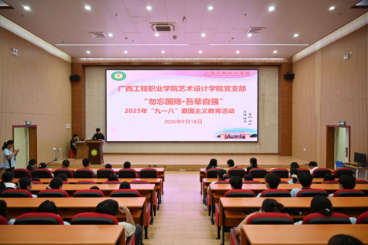 2025年9月18日晚,藝術(shù)設(shè)計學(xué)院黨支部在圖文信息大樓一樓學(xué)術(shù)報告廳開展了“勿忘國殤?吾輩自強”愛國主義教育活動。學(xué)院全體黨員、發(fā)展對象、入黨積極分子及學(xué)生干部齊聚一堂,活動由黨支部副書記趙志輝主持。