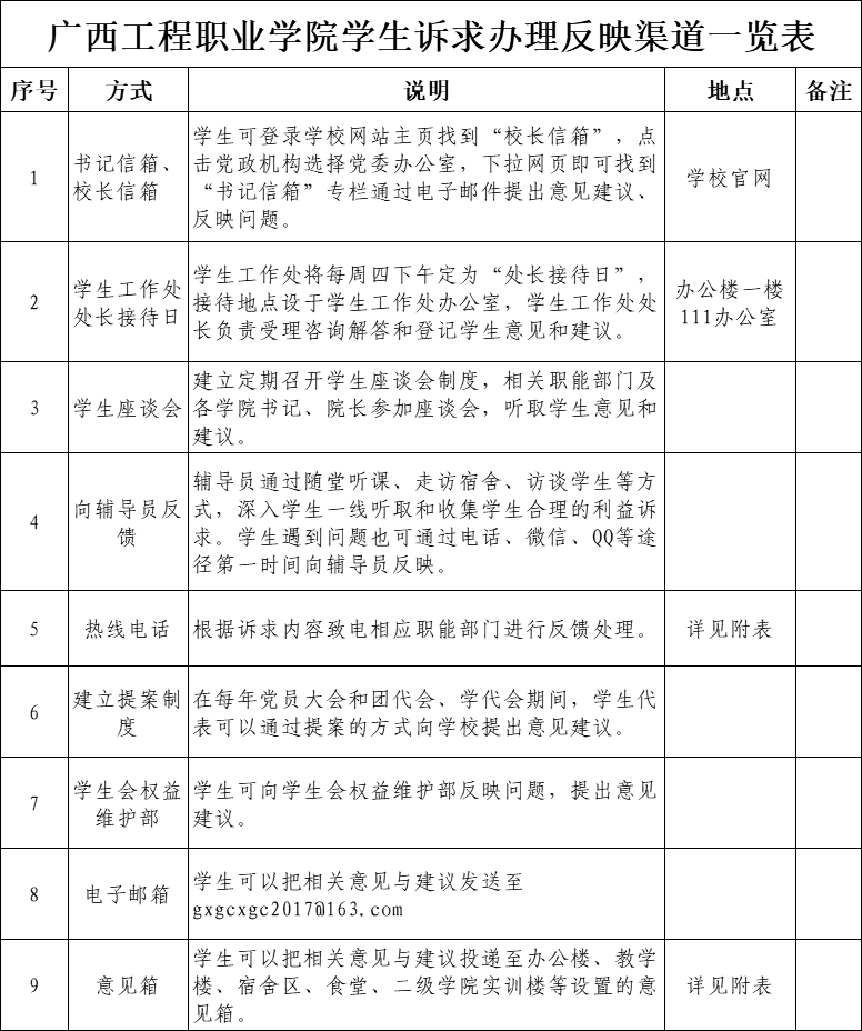 為暢通學生訴求渠道,切實解決廣大同學的訴求及反饋的問題,學校建立了9個學生訴求辦理反饋渠道,相關部門將主動對接、及時回應學生相關訴求。現(xiàn)將訴求辦理反映渠道公布如下: