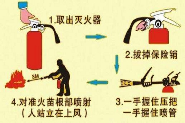 注:除酸堿式滅火器外,其他滅火器使用時不能顛倒,也不能橫