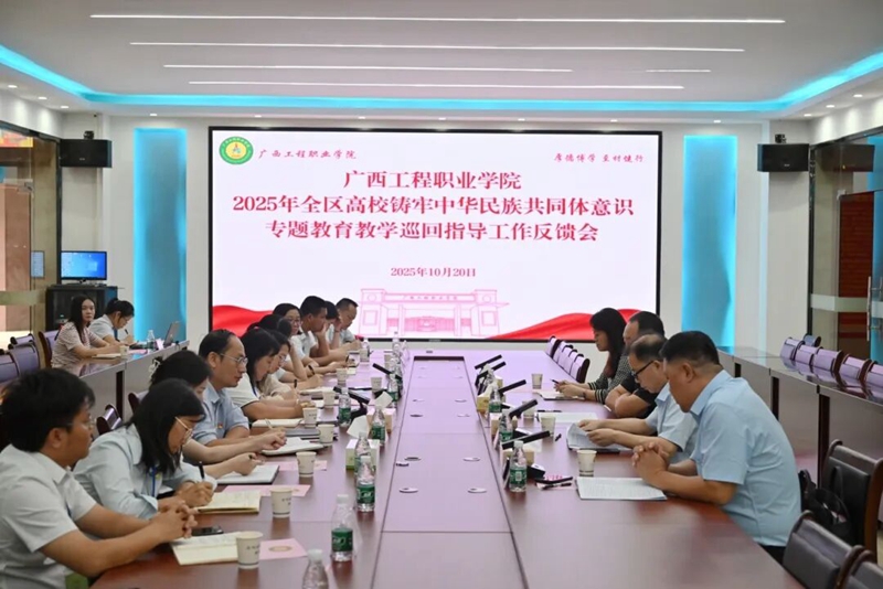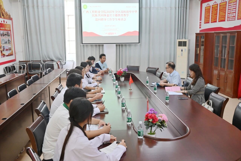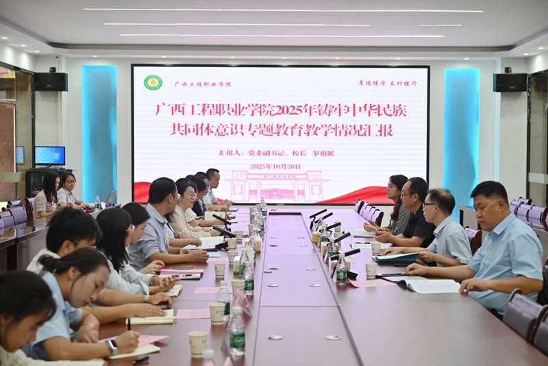 為深入貫徹落實習(xí)近平總書記關(guān)于加強和改進民族工作的重要思想,扎實推進“中華民族共同體概論”課程建設(shè)及相關(guān)教育工作,全面推進鑄牢中華民族共同體意識教育進教材、進課堂、進頭腦,推動鑄牢中華民族共同體意識融入思政課一體化建設(shè),2025年10月20日,全區(qū)高校鑄牢中華民族共同體意識專題教育教學(xué)巡回指導(dǎo)專家組王柏中組長一行到我校開展專項指導(dǎo)檢查工作。學(xué)校黨委副書記、校長羅艷妮,黨委副書記黃秋霞、副校長黃德偉出席匯報會。相關(guān)職能部門負責(zé)人參加匯報會。黨委副書記黃秋霞主持匯報會。