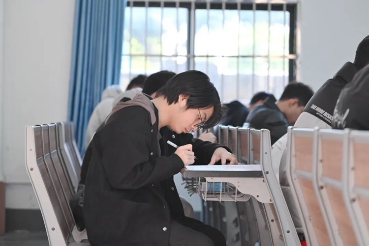 秩序井然的考場(chǎng)內(nèi),同學(xué)們沉著冷靜,周密思考,奮筆疾書。鯤鵬之志,盡在揮毫指間彰顯!