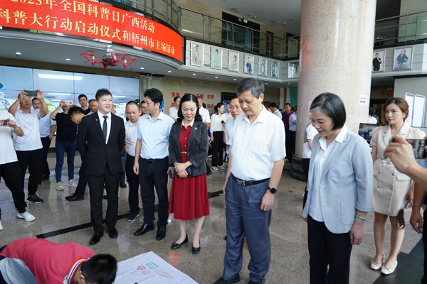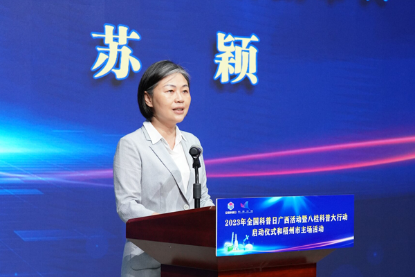 蘇穎在啟動(dòng)儀式上致辭,向出席本次活動(dòng)的來(lái)賓表示熱烈歡迎。她表示,梧州市委、市政府高度重視科技創(chuàng)新和科學(xué)普及,以科技賦能助力經(jīng)濟(jì)社會(huì)和特色產(chǎn)業(yè)高質(zhì)量發(fā)展,近年來(lái),創(chuàng)新建成大聯(lián)合、大協(xié)作、大科普工作機(jī)制,多渠道、多方式向群眾普及科學(xué)知識(shí)、倡導(dǎo)科學(xué)方法、傳播科學(xué)思想、弘揚(yáng)科學(xué)精神。當(dāng)前,梧州市經(jīng)濟(jì)總體持續(xù)向好,正朝著打造“一極三城”、建設(shè)“四個(gè)梧州”的宏偉目標(biāo)奮斗。梧州將以此次活動(dòng)為契機(jī),進(jìn)一步號(hào)召全市各級(jí)各部門(mén)和廣大群眾積極行動(dòng)起來(lái),主動(dòng)參與科普活動(dòng),不斷推動(dòng)科普事業(yè)高質(zhì)量發(fā)展和全民科學(xué)素質(zhì)水平大幅提升。