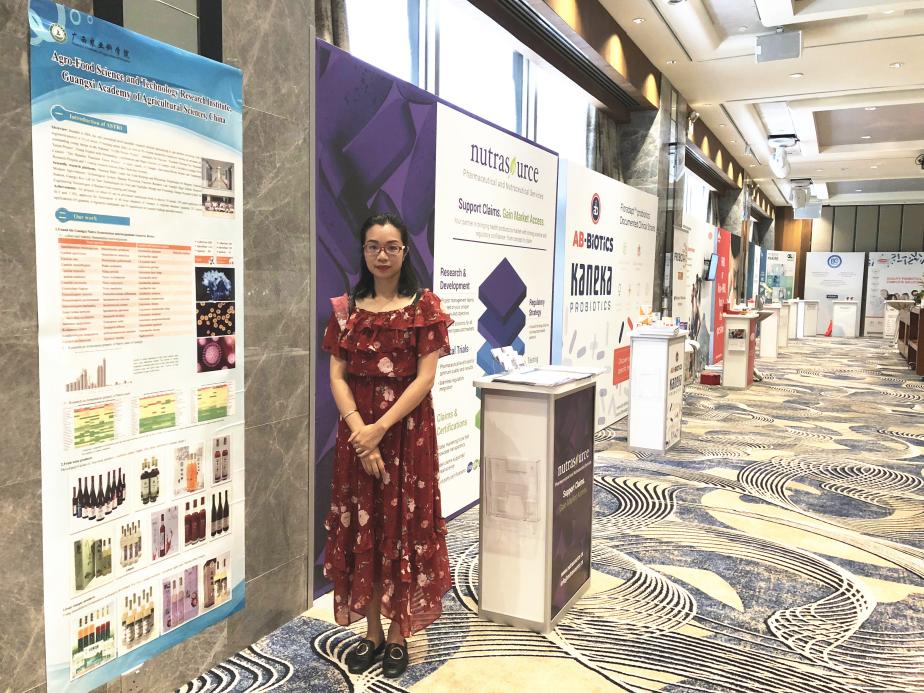 ▲辛明(中)在第三屆中國(廣西)—東盟農(nóng)業(yè)科技交流合作研討會(成果展示會)展示胡蘿卜采后商品化處理、梯次深加工利用技術(shù)成果產(chǎn)品