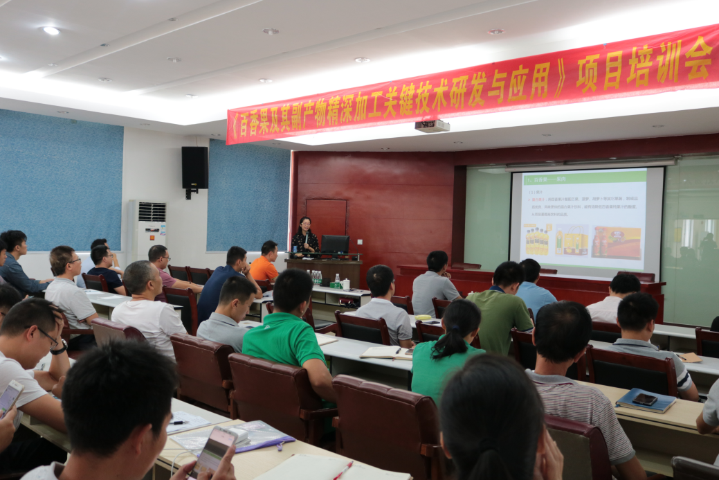 ▲辛明在相關(guān)企業(yè)開展百香果保鮮及深加工技術(shù)培訓(xùn)