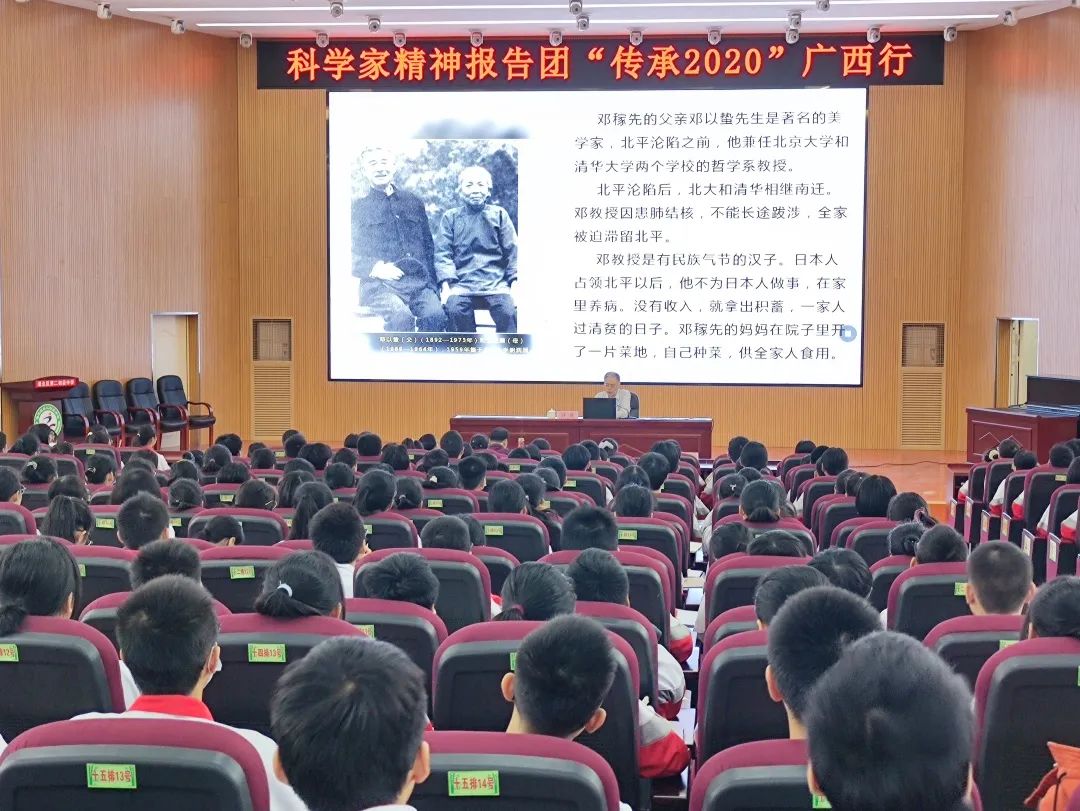為進(jìn)一步擴(kuò)大活動覆蓋面和影響力,廣西科技館還聯(lián)合中國科協(xié)科學(xué)技術(shù)傳播中心等單位,開展科學(xué)家精神報(bào)告團(tuán)“傳承2020”廣西行活動。11月25~26日,活動先后來到貴港市和河池市,為當(dāng)?shù)?所學(xué)校共計(jì)2500多名師生講述關(guān)于老一代科學(xué)家的動人故事。