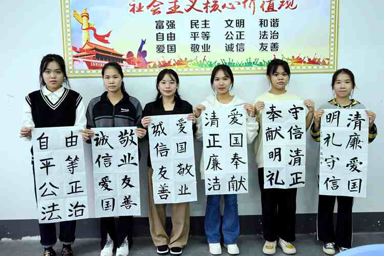 為進(jìn)一步推進(jìn)“清廉學(xué)校”建設(shè),營(yíng)造風(fēng)清氣正的教育生態(tài)和發(fā)展環(huán)境,提高廣大教職工為人師表、廉潔從教、愛(ài)崗敬業(yè)的意識(shí),增強(qiáng)廣大學(xué)生干凈做人、規(guī)范做事、遵紀(jì)守法的自覺(jué)性,幫助青年學(xué)生扣好人生第一顆扣子,2022年11月中旬,廣西工程職業(yè)學(xué)院開展以“妙筆寫清廉 翰墨揚(yáng)正氣”為主題的廉潔文化進(jìn)書法課堂教育活動(dòng)。