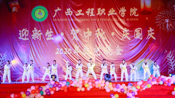 迎新文藝演出節(jié)目形式多樣,接地氣,貼近學(xué)生,有熱情奔放的爵士舞表演,也有溫婉細(xì)膩的古典舞表演;有時(shí)尚又接地氣的T臺(tái)秀,也有特色民族舞表演;有深情獨(dú)唱,也有磅礴合唱;有激蕩的傳統(tǒng)武術(shù)表演,也有強(qiáng)勁的軍人擒敵表演……節(jié)目精彩紛呈,不斷引起觀眾的共鳴和熱烈的掌聲。廣西工程職業(yè)學(xué)院平果附屬實(shí)驗(yàn)中學(xué)的同學(xué)們帶來(lái)了一曲青春激揚(yáng)的合唱《夜空中最亮的星》,讓我們看到了未來(lái)可期,祝愿他們將來(lái)都能榮登大學(xué)的神圣殿堂。