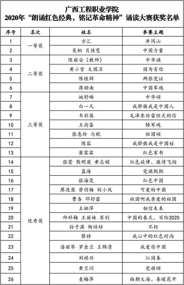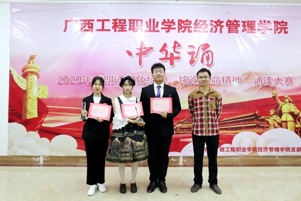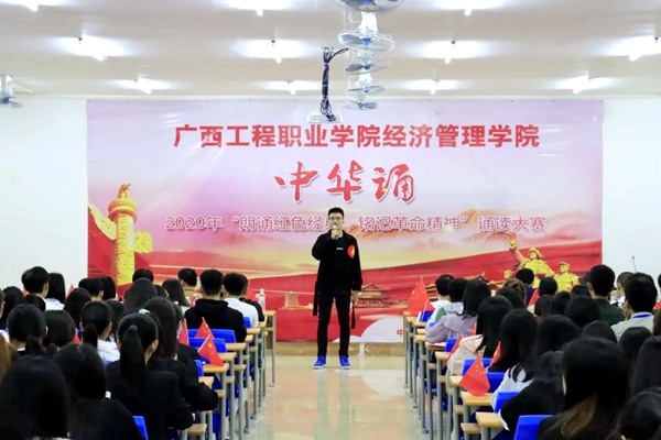 今年是建黨99周年,為繼承和發(fā)揚(yáng)黨的光榮傳統(tǒng),增強(qiáng)紅色文化對青年大學(xué)生的吸引力、感召力,凝聚革命精神力量,厚植愛國情懷,傳遞“信仰、信念、信任、信守、自信”的正能量,11月19日晚,我校經(jīng)濟(jì)管理學(xué)院在實(shí)訓(xùn)樓102室舉辦2020年“朗誦紅色經(jīng)典,銘記革命精神” 主題誦讀大賽決賽。