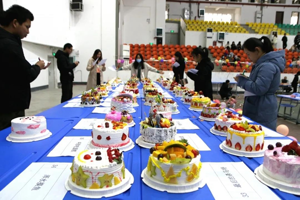 你思我想,大家磨刀霍霍,齊上陣。比賽中,各個團隊充分發(fā)揮團隊優(yōu)勢,以豐富的想象,巧妙的構(gòu)思和足夠的耐心,合理利用蛋糕制作材料,設(shè)計出風(fēng)格多樣、造型精美、構(gòu)思新穎的美味蛋糕,創(chuàng)意十足,現(xiàn)場氣氛分外熱鬧。