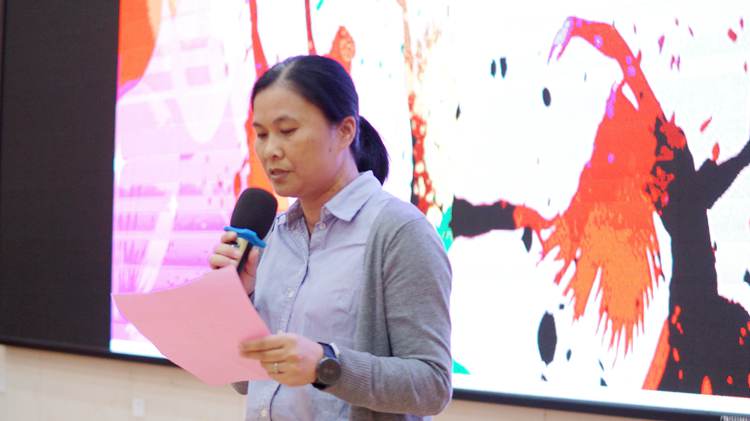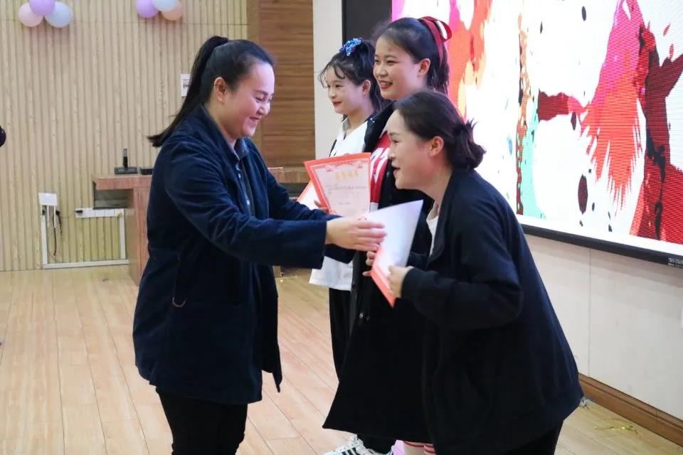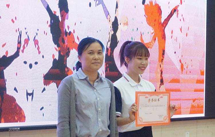 農(nóng)淑娟老師為榮獲三等獎的隊(duì)伍頒獎