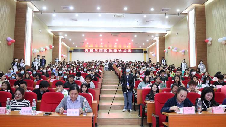 為進(jìn)一步繁榮校園文化,豐富同學(xué)們的課余生活,11月12日晚,我校教育學(xué)院在圖文信息大樓報(bào)告廳舉行啦啦操選拔賽,學(xué)院共有13支參賽隊(duì)伍參加了選拔。教育學(xué)院黨支部書記盧燕梅、教育學(xué)院副院長梁善雅及學(xué)院20級、21級輔導(dǎo)員出席比賽現(xiàn)場,學(xué)校各個(gè)社團(tuán)代表及教育學(xué)院學(xué)生代表觀看比賽。