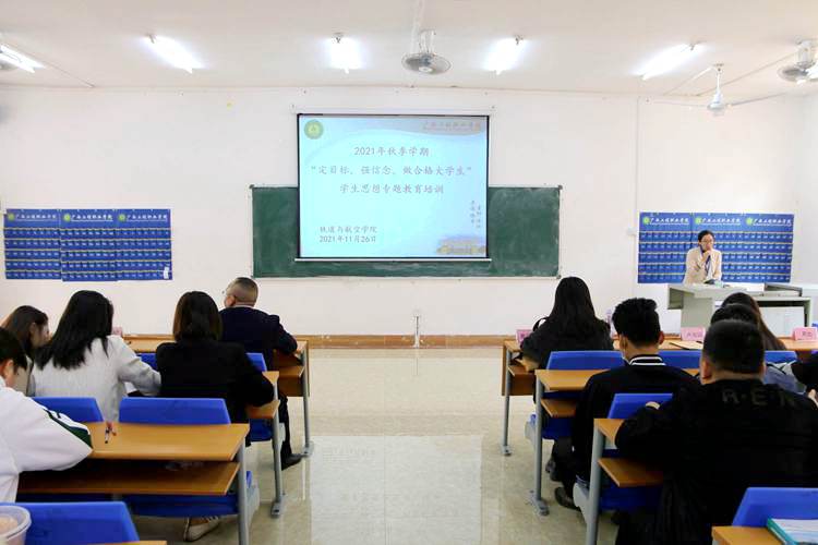 為進一步加強大學生思想政治教育,培育和踐行社會主義核心價值觀,促進廣大青年在新時代中主動作為、勇?lián)熑?,踐行“請黨放心、強國有我”青春誓言,11月25日下午,學校鐵道與航空學院在新經(jīng)管樓102室召開2021年秋季學期“定目標,強信念,做合格大學生”學生思想專題教育培訓。校黨委委員、副校長彭高彬作專題講座,鐵道與航空學院黨支部書記、副院長覃鳳姣,學生科科長謝小玲、全體輔導員以及2020級學生代表參加培訓。