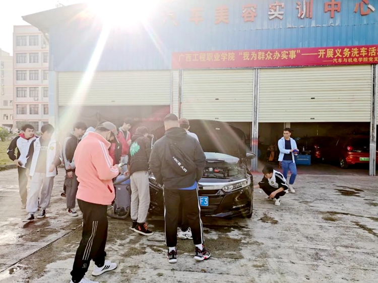 為進(jìn)一步弘揚(yáng)志愿服務(wù)精神,扎實(shí)推進(jìn)黨史學(xué)習(xí)教育“我為群眾辦實(shí)事”實(shí)踐活動(dòng),把學(xué)黨史與強(qiáng)化專業(yè)特色結(jié)合起來, 將黨史學(xué)習(xí)教育成果切實(shí)落實(shí)到實(shí)際工作中,為師生辦實(shí)事、解難題,營造文明和諧的校園。2021年12月2日,汽車與機(jī)電學(xué)院舉行“我為師生辦實(shí)事”義務(wù)洗車志愿服務(wù)活動(dòng),為學(xué)校師生免費(fèi)洗車。