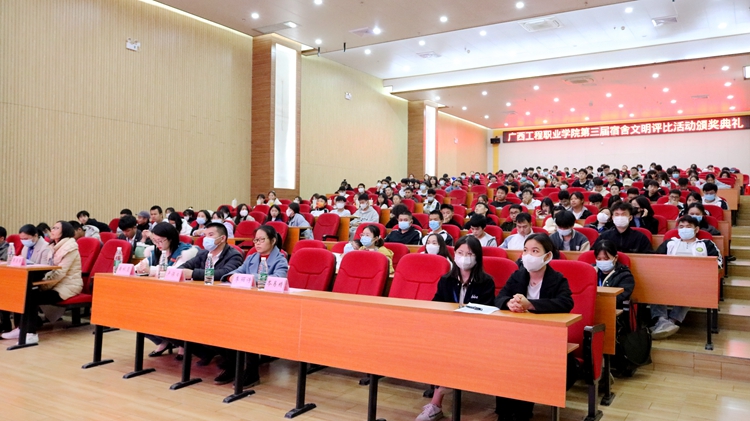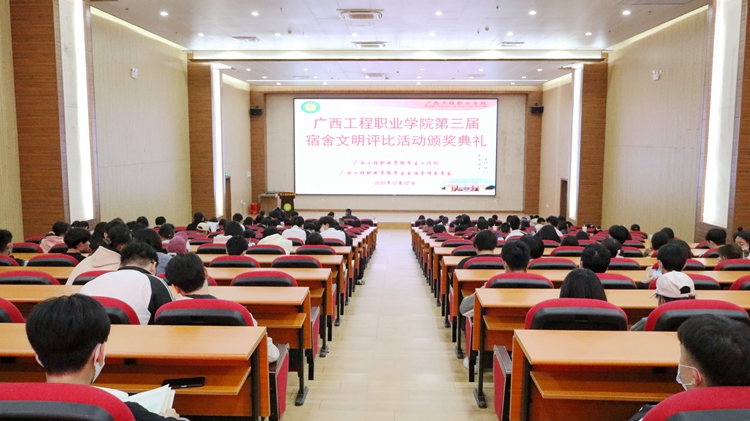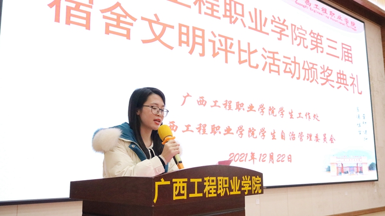 2021年12月22日晚,第三屆宿舍文明評比活動頒獎典禮在圖文信息樓一樓學術(shù)報告廳舉行,學校校長助理黃秋霞、覃清香,學生工作處副處長盧保日,各二級學院(部)負責人、分團委書記等出席典禮,各二級學院輔導(dǎo)員以及學生代表參加頒獎典禮。