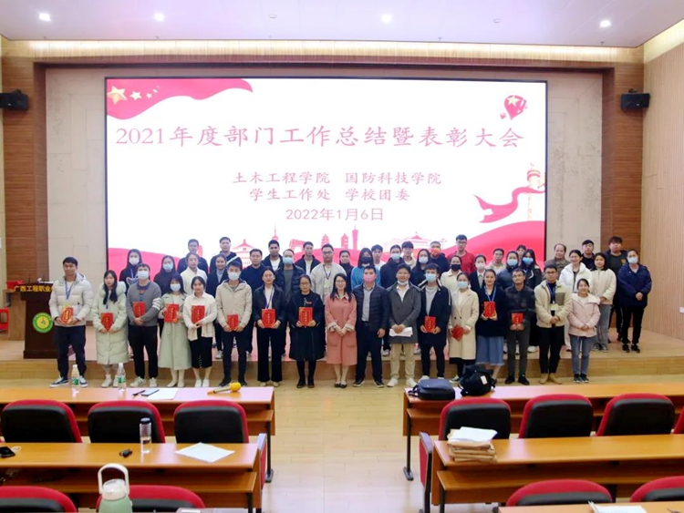 2022年1月6日下午,我校土木工程學(xué)院、國(guó)防科技學(xué)院、學(xué)生工作處和校團(tuán)委在圖文信息大樓一樓報(bào)告廳聯(lián)合召開(kāi)2021年度工作總結(jié)暨表彰大會(huì),總結(jié)各部門(mén)的年度工作,表彰先進(jìn),部署下學(xué)期工作任務(wù),推動(dòng)各部門(mén)工作在2022年取得新成績(jī)。