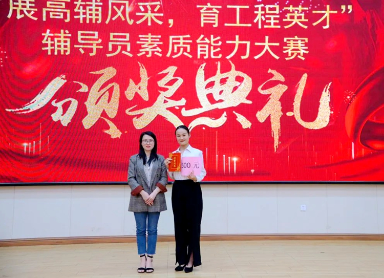 楊竟、梁欣欣副院長(zhǎng)分別為榮獲優(yōu)勝獎(jiǎng)的輔導(dǎo)員頒獎(jiǎng)