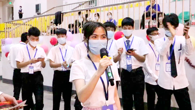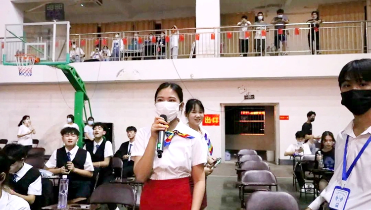 晚會(huì)在奏唱中華人民共和國國歌中來開序幕。學(xué)校黨委副書記黃秋霞致辭,她在致辭中要求全體師生要牢記習(xí)近平總書記的囑托,踐行初心使命,為建設(shè)社會(huì)主義現(xiàn)代化強(qiáng)國而努力奮斗,以優(yōu)異成績迎接黨的二十大勝利召開!最后祝愿學(xué)校的發(fā)展越來越好!