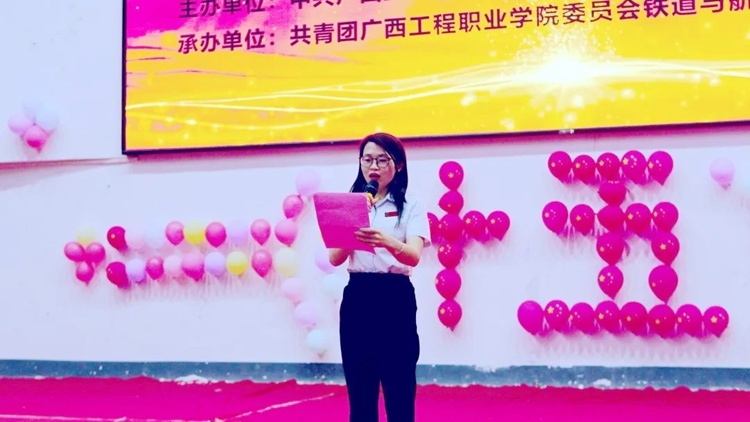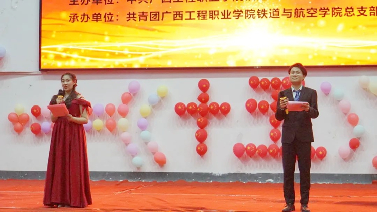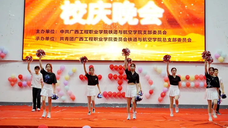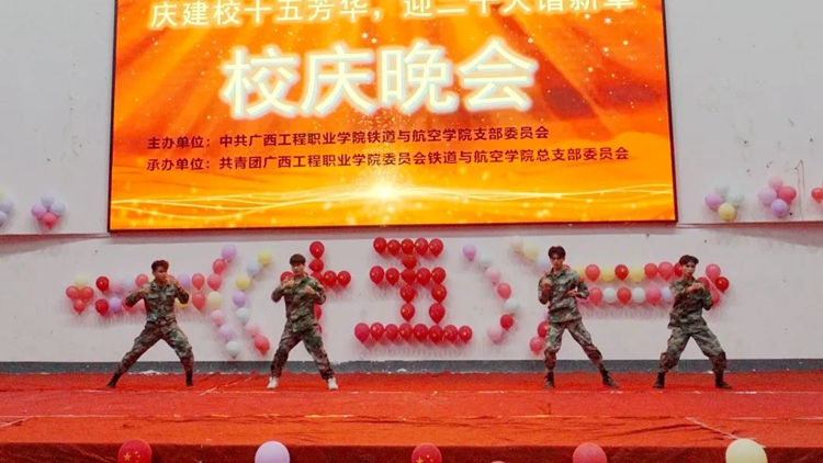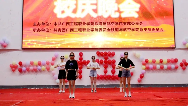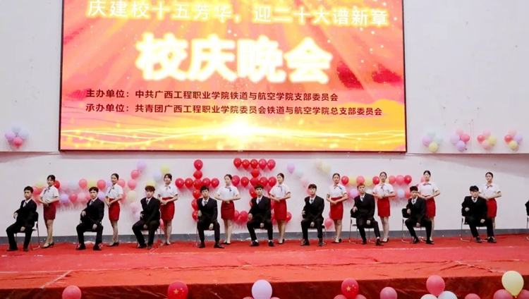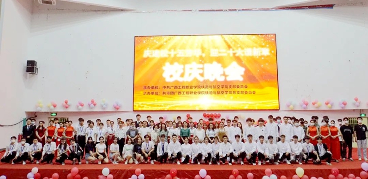 2022年4月14日晚,鐵道與航空學(xué)院在體育館舉行“慶建校十五芳華,迎二十大譜新章”文藝晚會(huì),學(xué)校黨委副書記黃秋霞、校團(tuán)委書記梁鳳琴,鐵道與航空學(xué)院黨支部書記、院長覃鳳姣,鐵道與航空學(xué)院黨支部組織委員謝錫潔、分團(tuán)委書記謝小玲、辦公室主任黃晶晶,汽車與機(jī)電學(xué)院分團(tuán)委書記楊小櫻、土木工程學(xué)院分團(tuán)委書記陳春任出席晚會(huì),各學(xué)生會(huì)和社團(tuán)代表參加了此次晚會(huì)。