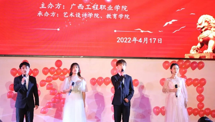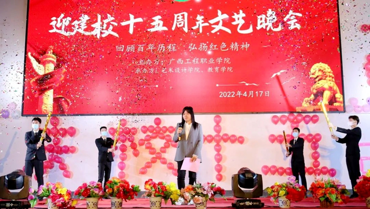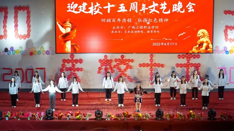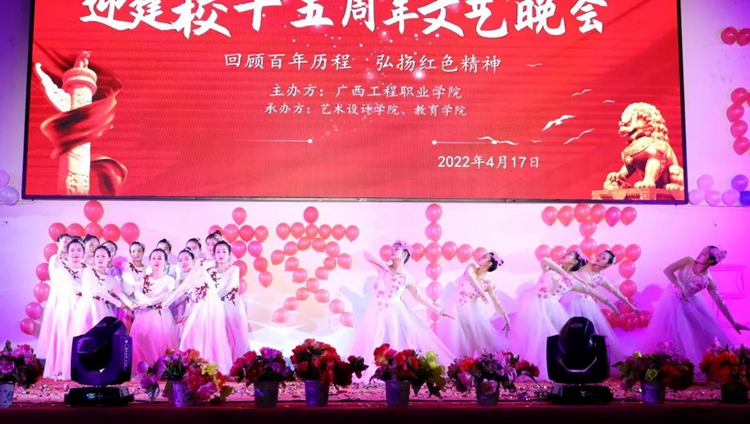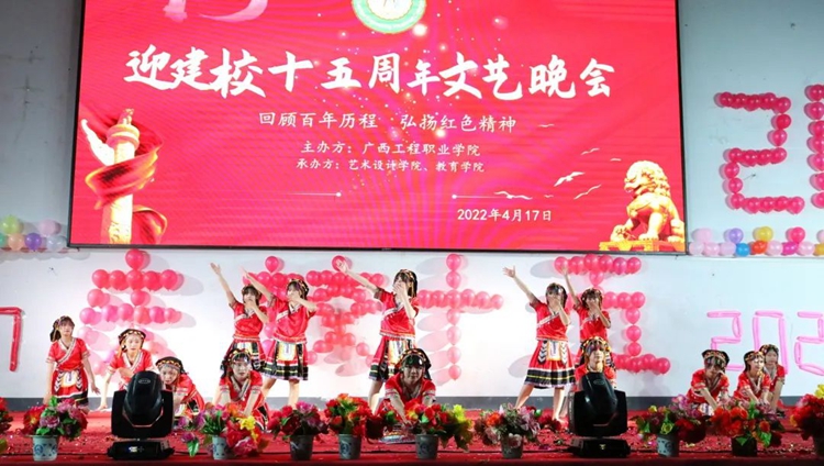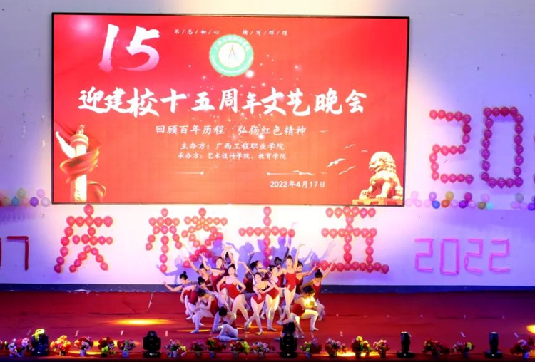 2022年4月17日晚,藝術(shù)設(shè)計(jì)學(xué)院、教育學(xué)院在體育館聯(lián)合舉辦“回顧百年歷程,弘揚(yáng)紅色精神”迎建校十五周年文藝晚會,獻(xiàn)禮建團(tuán)100周年,喜迎黨的二十大召開。