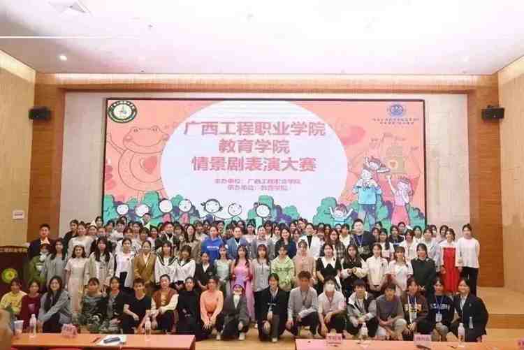 為提升表演能力,給同學(xué)們自我展示的平臺,同時檢驗學(xué)前教育專業(yè)學(xué)生的學(xué)習(xí)的成果,11月16日晚,廣西工程職業(yè)學(xué)院教育學(xué)院在圖文信息大樓一樓學(xué)術(shù)報告廳舉行2021級學(xué)前教育專業(yè)情景劇表演匯報。教育學(xué)院梁善雅院長、經(jīng)濟管理學(xué)院龐英連院長、指導(dǎo)老師陶輝老師以及輔導(dǎo)員王冬老師、彭春艷老師、李霞老師、李肇霖老師等參加活動,與學(xué)生一同觀看了匯報演出。