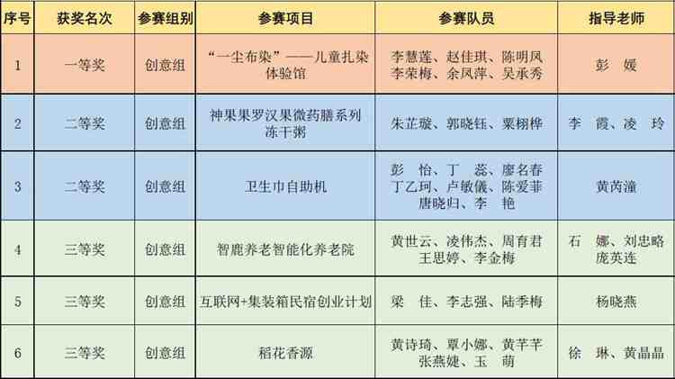 經(jīng)過激烈角逐,《“一塵布染”——兒童扎染體驗館》項目獲得創(chuàng)意組一等獎,《神果果羅漢果微藥膳系列凍干粥》、《衛(wèi)生巾自助機》項目分別榮獲創(chuàng)意組二等獎,《智鹿養(yǎng)老智能化養(yǎng)老院》、《互聯(lián)網(wǎng)+集裝箱民宿創(chuàng)業(yè)計劃》、《稻花香源》項目分別榮獲創(chuàng)意組三等獎。