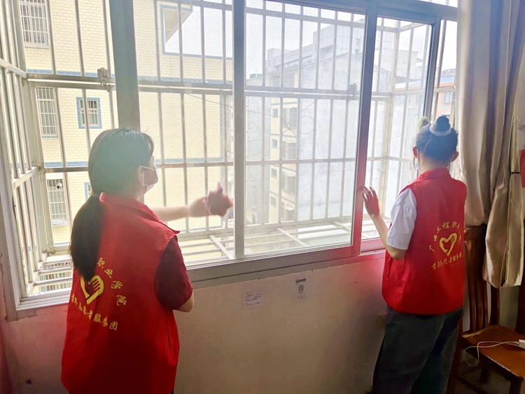 在吉福敬老院,一部分志愿者陪伴腿腳不便的老人出門散步,沐浴陽光,了解他們的日常生活情況及身體狀況。另一部分志愿者到老爺爺、老奶奶的宿舍,開展整理內(nèi)務(wù)打掃衛(wèi)生等義務(wù)勞動。他們認真負責的態(tài)度贏得了養(yǎng)老院爺爺奶奶和工作人員的好評。