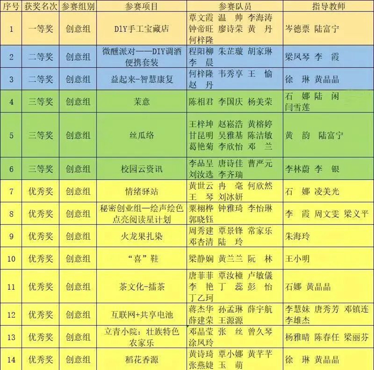 經過一系列激烈的競爭,最終《DlY手工寶藏店》項目獲得創(chuàng)意組一等獎,《微醺派對——DIY調酒便攜套裝》《益起來—智慧康復》項目獲得創(chuàng)意組二等獎,《茉意》《絲瓜絡》《校園云資訊》項目獲得創(chuàng)意組三等獎。