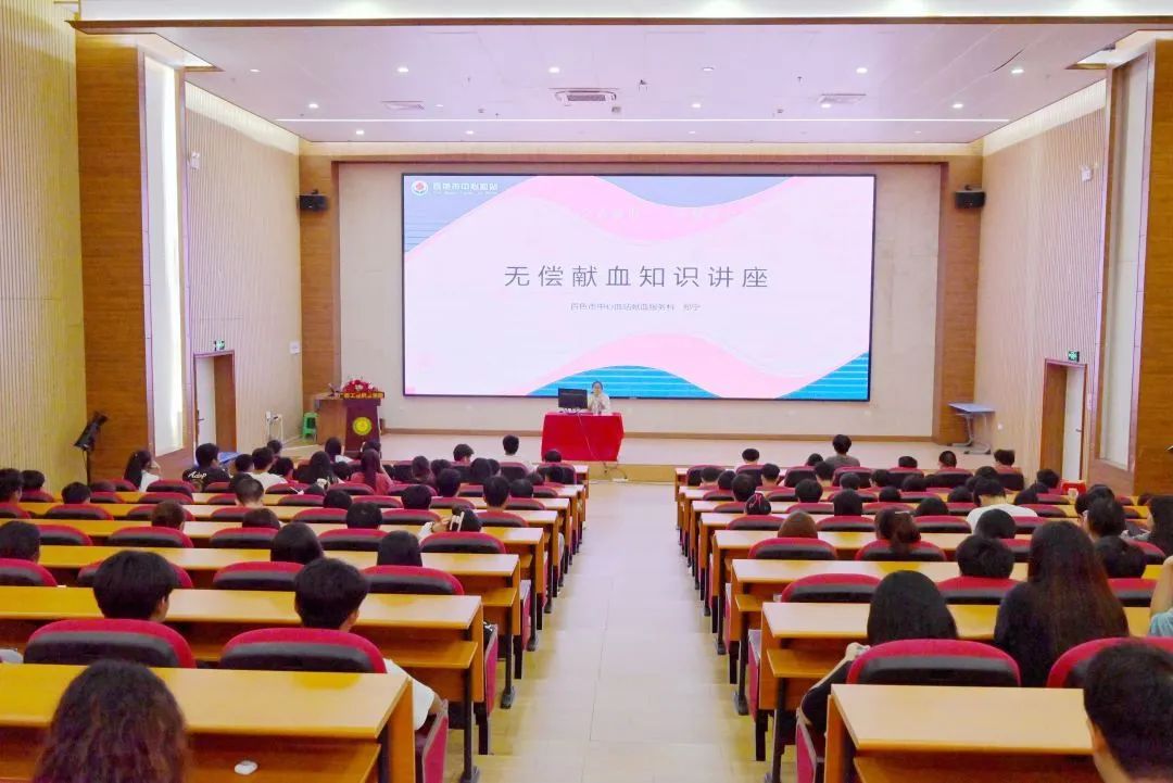 為進一步弘揚奉獻精神,增強廣大師生對獻血事業(yè)的了解,2023年10月24日晚,百色市中心血站在我校圖文信息大樓一樓學(xué)術(shù)報告廳開展無償獻血知識講座。講座由百色市中心血" />