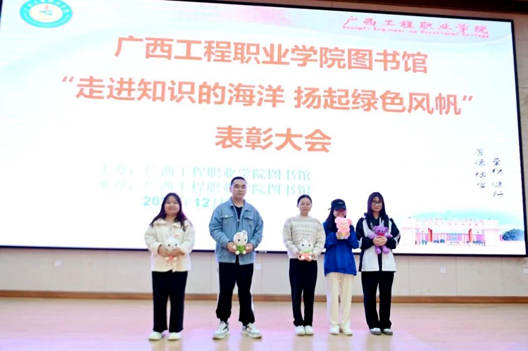 為了營(yíng)造舒適整潔的閱讀環(huán)境,創(chuàng)造積極向上的學(xué)習(xí)氛圍,弘揚(yáng)“奉獻(xiàn)、友愛(ài)、互助、進(jìn)步”的服務(wù)精神,增強(qiáng)同學(xué)們的奉獻(xiàn)意識(shí)與社會(huì)責(zé)任感,12月7日下午,學(xué)校圖書(shū)館在圖文信息大樓學(xué)術(shù)報(bào)告廳舉行“走進(jìn)知識(shí)的海洋 揚(yáng)起綠色風(fēng)帆”表彰大會(huì),表彰積極參與圖書(shū)館服務(wù)工作并表現(xiàn)優(yōu)秀的先進(jìn)個(gè)人。學(xué)校圖書(shū)館館長(zhǎng)張清泉、圖書(shū)館韋連飛老師、農(nóng)山老師及受表彰的先進(jìn)個(gè)人和學(xué)生代表參加表彰大會(huì)。大會(huì)由圖書(shū)館農(nóng)山老師主持。