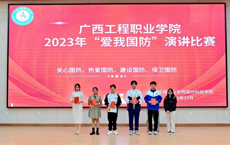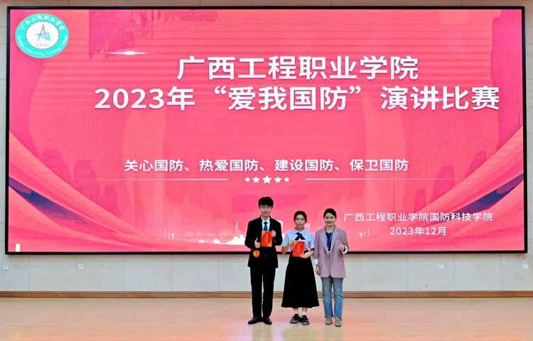 為深入學(xué)習(xí)貫徹習(xí)近平新時代中國特色社會主義思想和黨的二十大精神,認(rèn)真學(xué)習(xí)貫徹習(xí)近平總書記關(guān)于加強(qiáng)全民國防教育的重要論述,全面貫徹落實習(xí)近平總書記對廣西“五個更大”重要要求、視察廣西“4·27”重要講話和對廣西工作系列重要指示精神,進(jìn)一步在全社會營造關(guān)心國防、熱愛國防、建設(shè)國防、保衛(wèi)國防的濃厚氛圍。12月12日,廣西工程職業(yè)學(xué)院在圖文信息大樓一樓學(xué)術(shù)報告廳舉行2023年“愛我國防”演講比賽。比賽由國防科技學(xué)院承辦。章昊、梁思媛同學(xué)主持比賽。