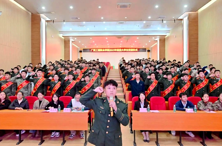 黨委副書記黃秋霞,副校長黃德偉,黨委委員、學(xué)工處副處長李麗詩,學(xué)生工作處資助科科長范玉翠,征兵工作站負(fù)責(zé)人陳國昇及各二級學(xué)院科長出席儀式,國防科技學(xué)院師生代表參加儀式。