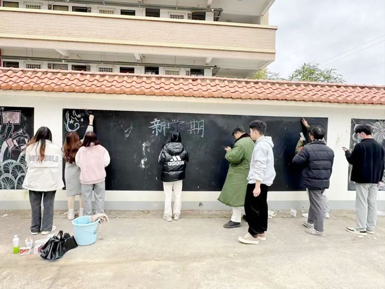 同學們用毛筆小心地勾勒出每一個筆畫,將它們匯聚在一起,創(chuàng)造出美麗的圖案。