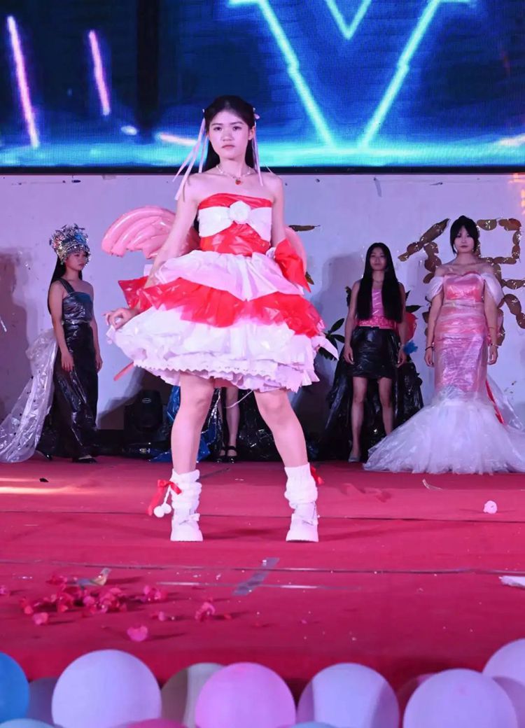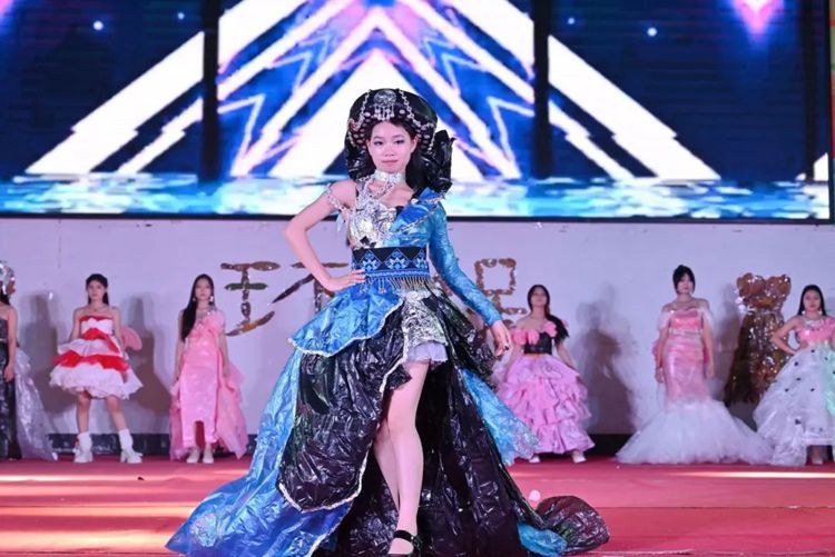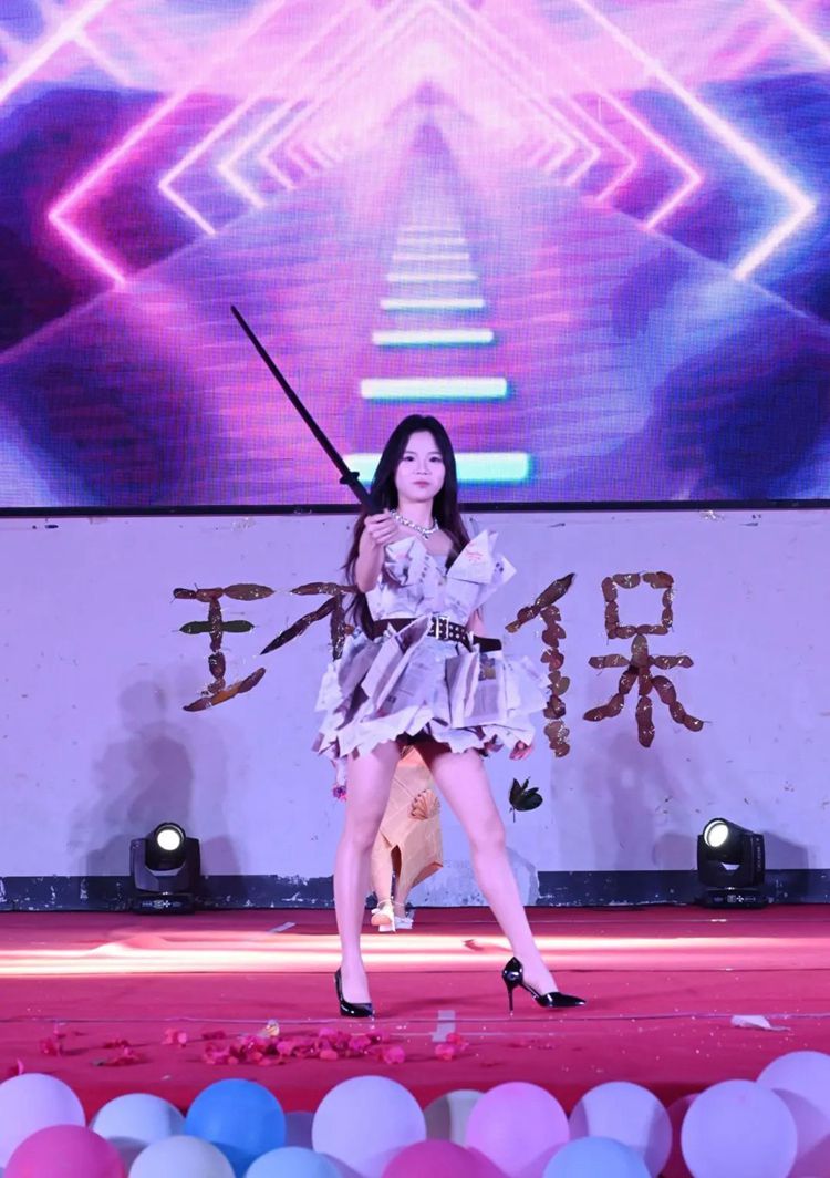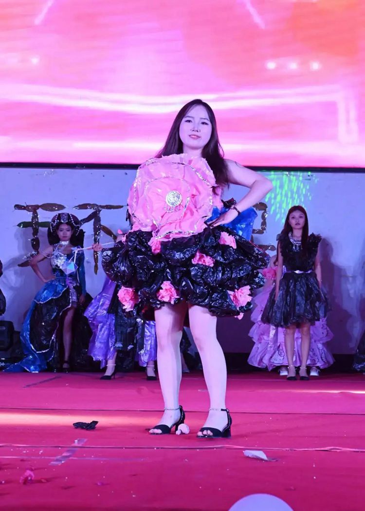 選手們熱情高漲,充分發(fā)揮想象力和創(chuàng)造力,將塑料袋、廢報(bào)紙等廢棄物轉(zhuǎn)化為時(shí)尚的服裝作品,并依次進(jìn)場(chǎng)完成走秀與作品展示。
